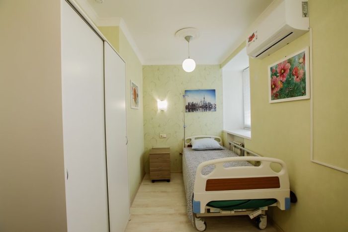 Интерьер палат приближен к домашней обстановке, чтобы больные чувствовали себя более расслабленно и комфортно, чем в стандартных «больничных стенах».